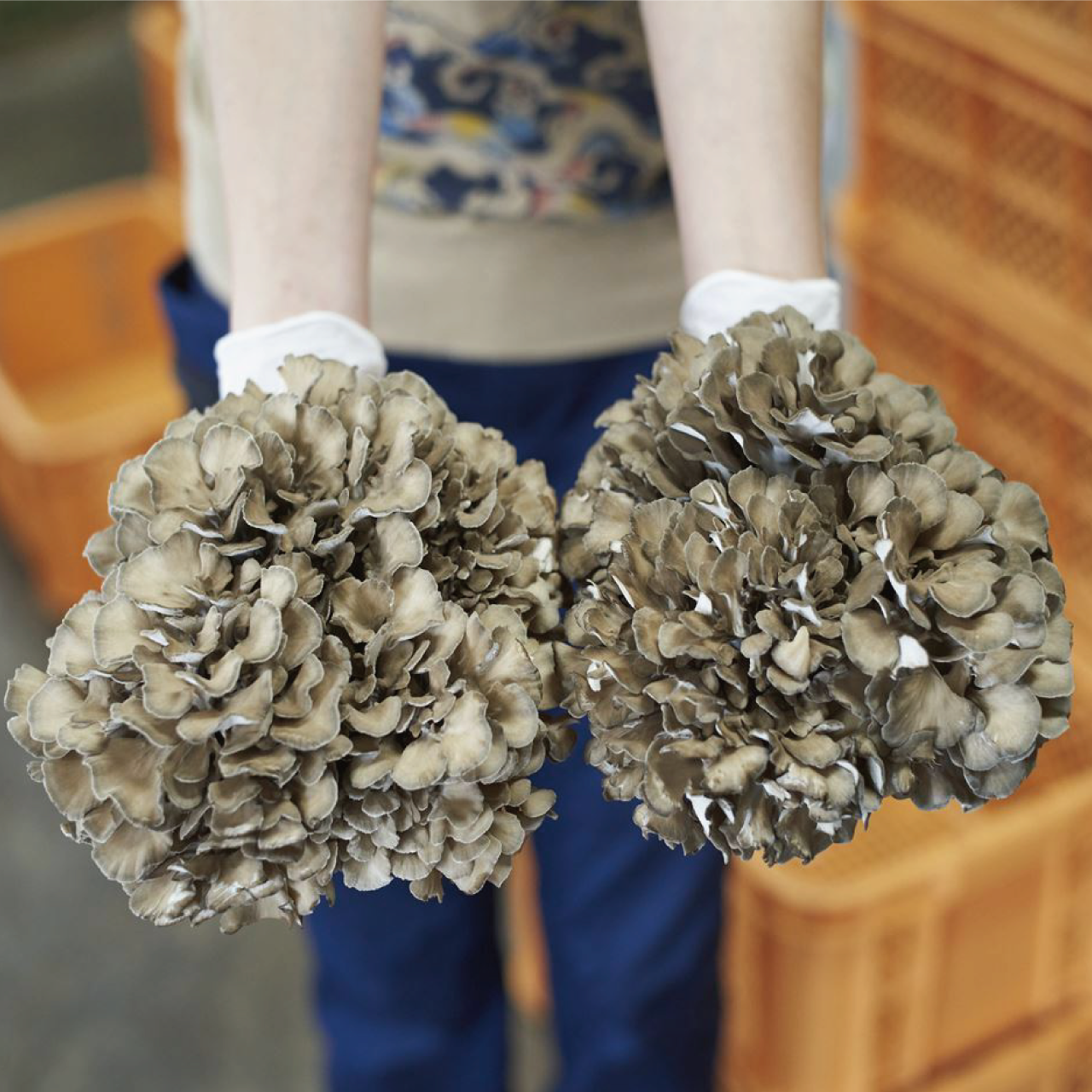 仕込みから収穫までの約三か月間、毎日じっくり舞茸と向き合って育てているため、流通量の少ない貴重な商品です。